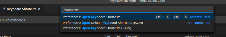 참고로 VScode 단축키는 Preferences: Open Keyboard Shortcuts에서 얼마든지 수정가능